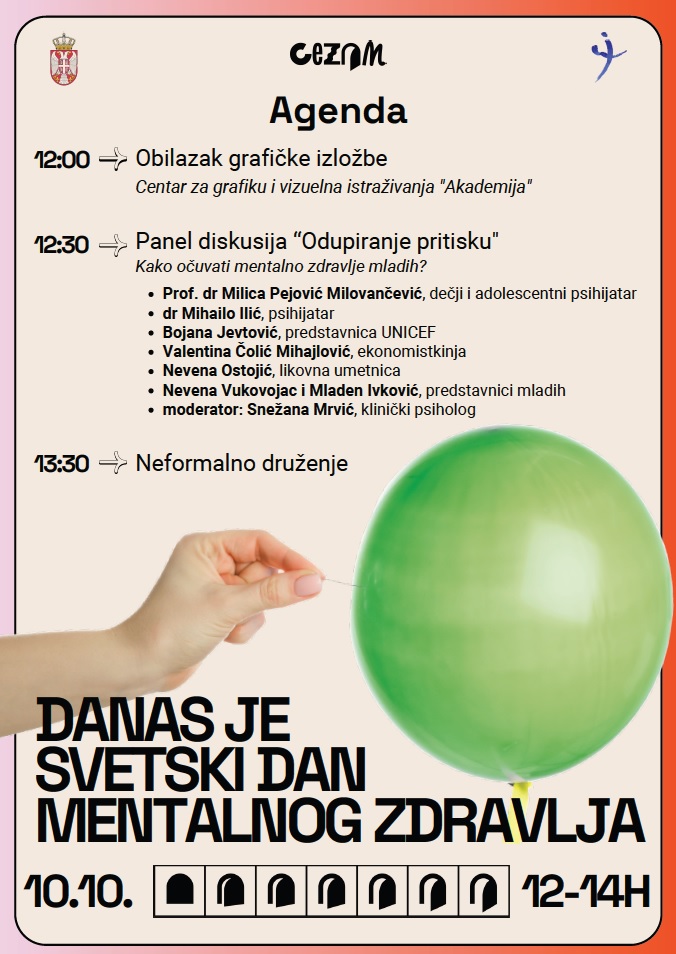 Велико нам је задовољство да вас позовемо на панел дискусију „Одупирање притиску: Како очувати ментално здравље младих?“, организовану поводом Светског дана менталног здравља. Панел ће преиспитати последице све већих очекивања која друштво поставља пред младе генерације.